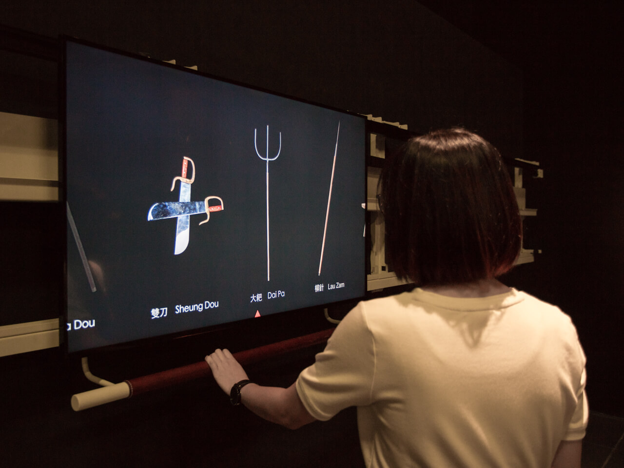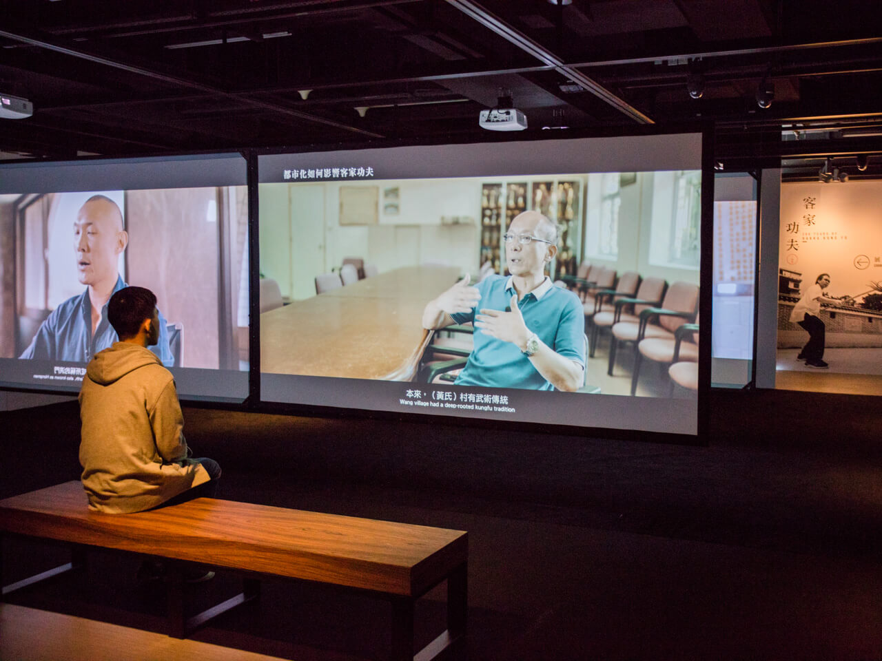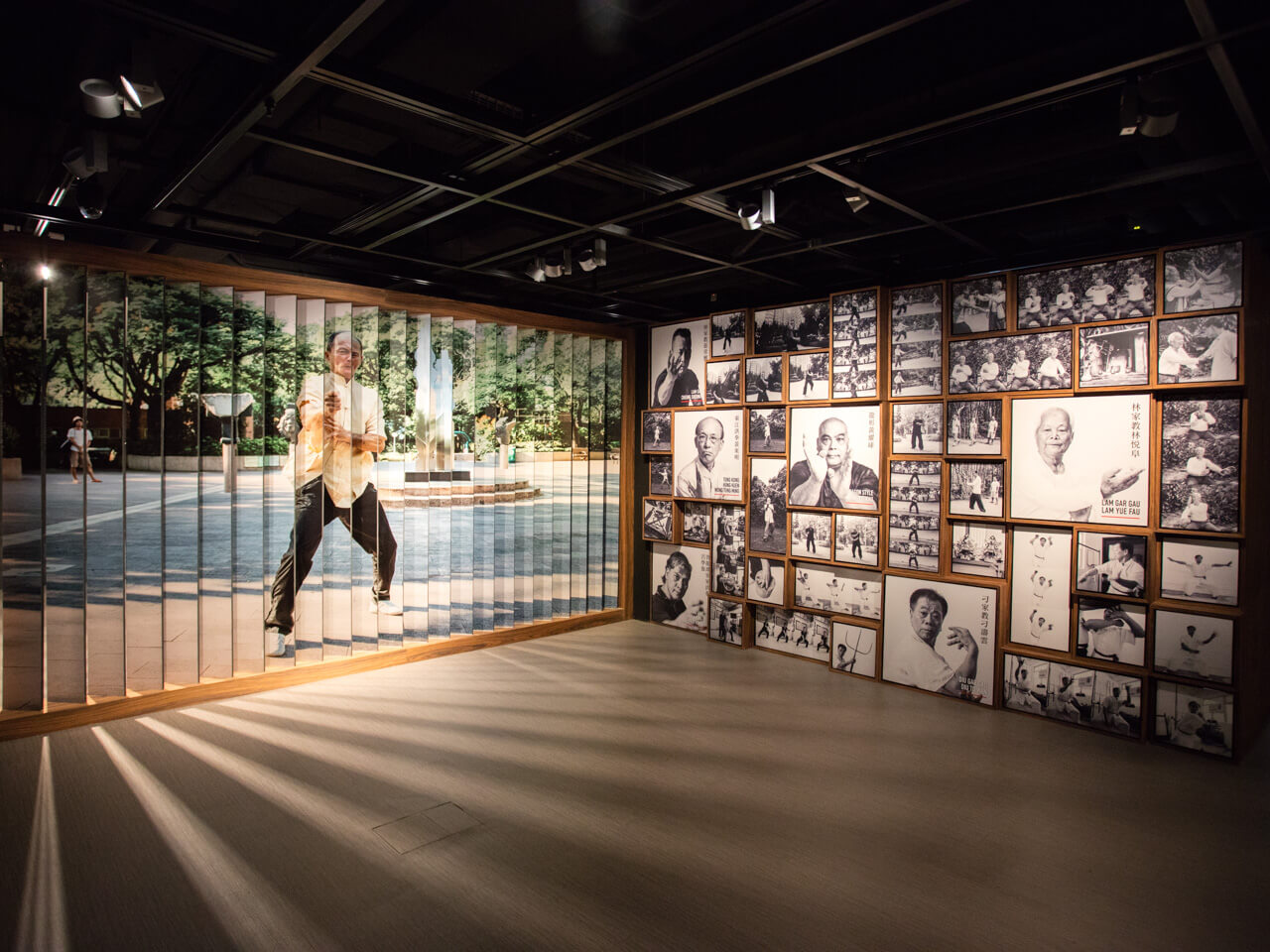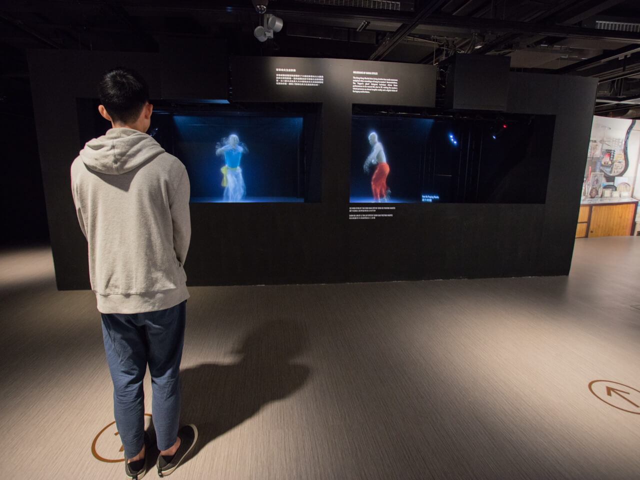 In this ‘Pepper’s ghost’ installation, holographic illusions bring to life the three-dimensional presence and performances of eminent Hakka kung fu masters.