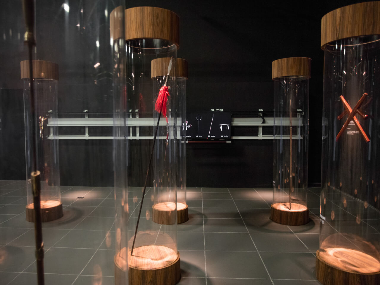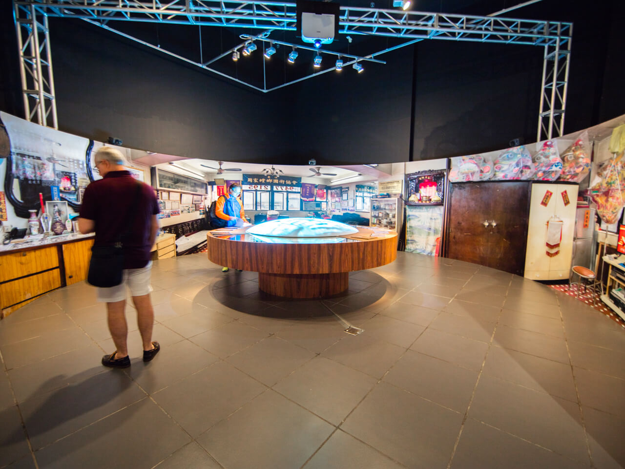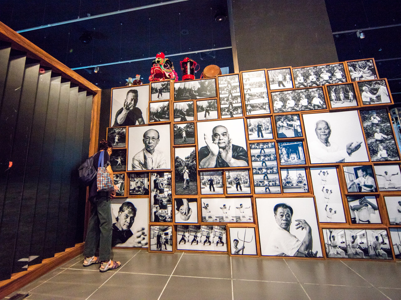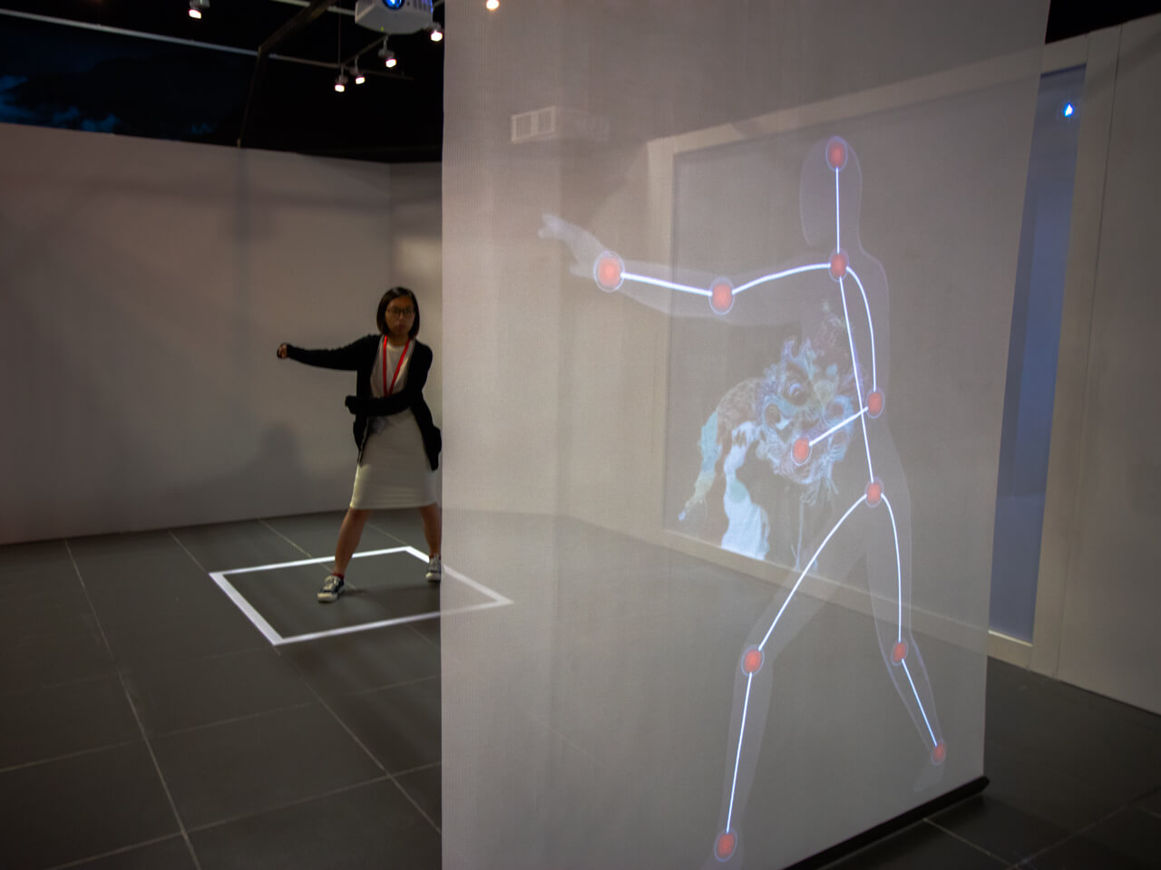 In this ‘Pepper’s ghost’ installation, holographic illusions bring to life the three-dimensional presence and performances of eminent Hakka kung fu masters.