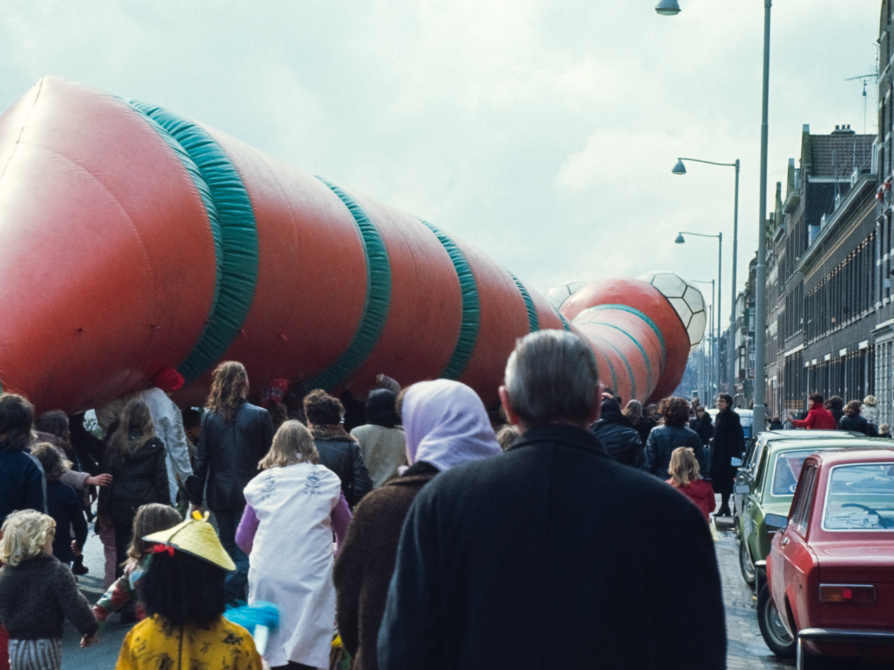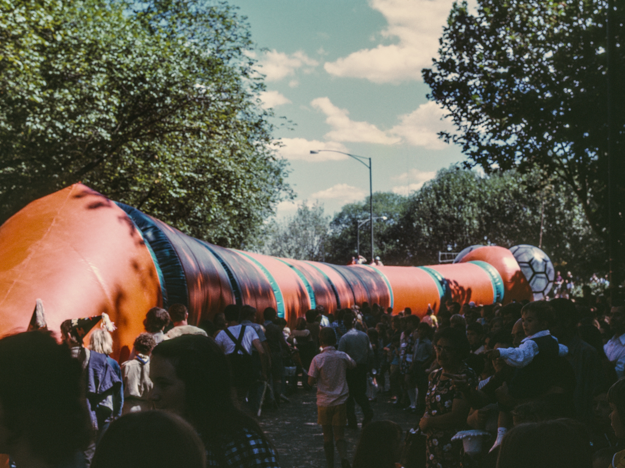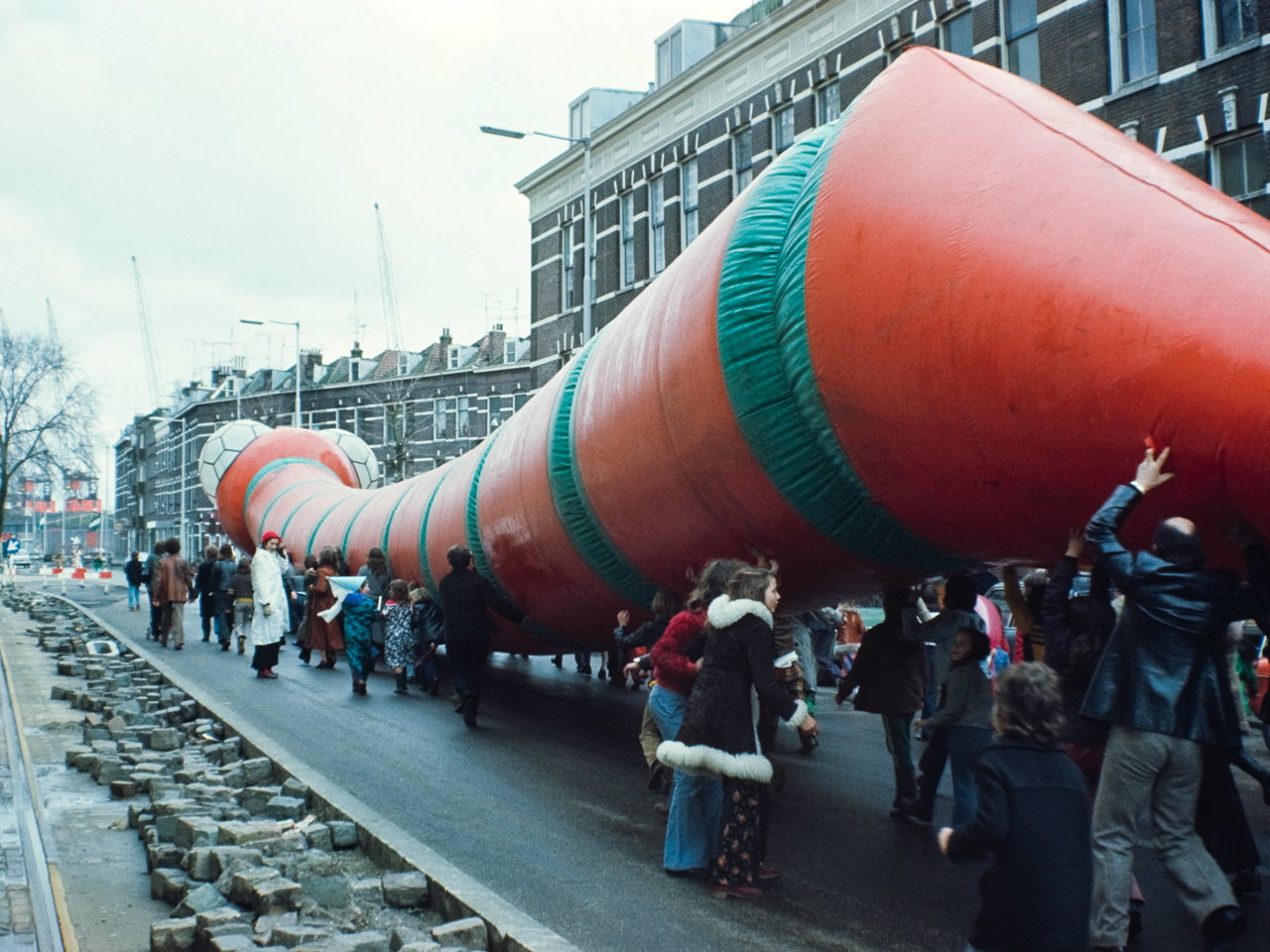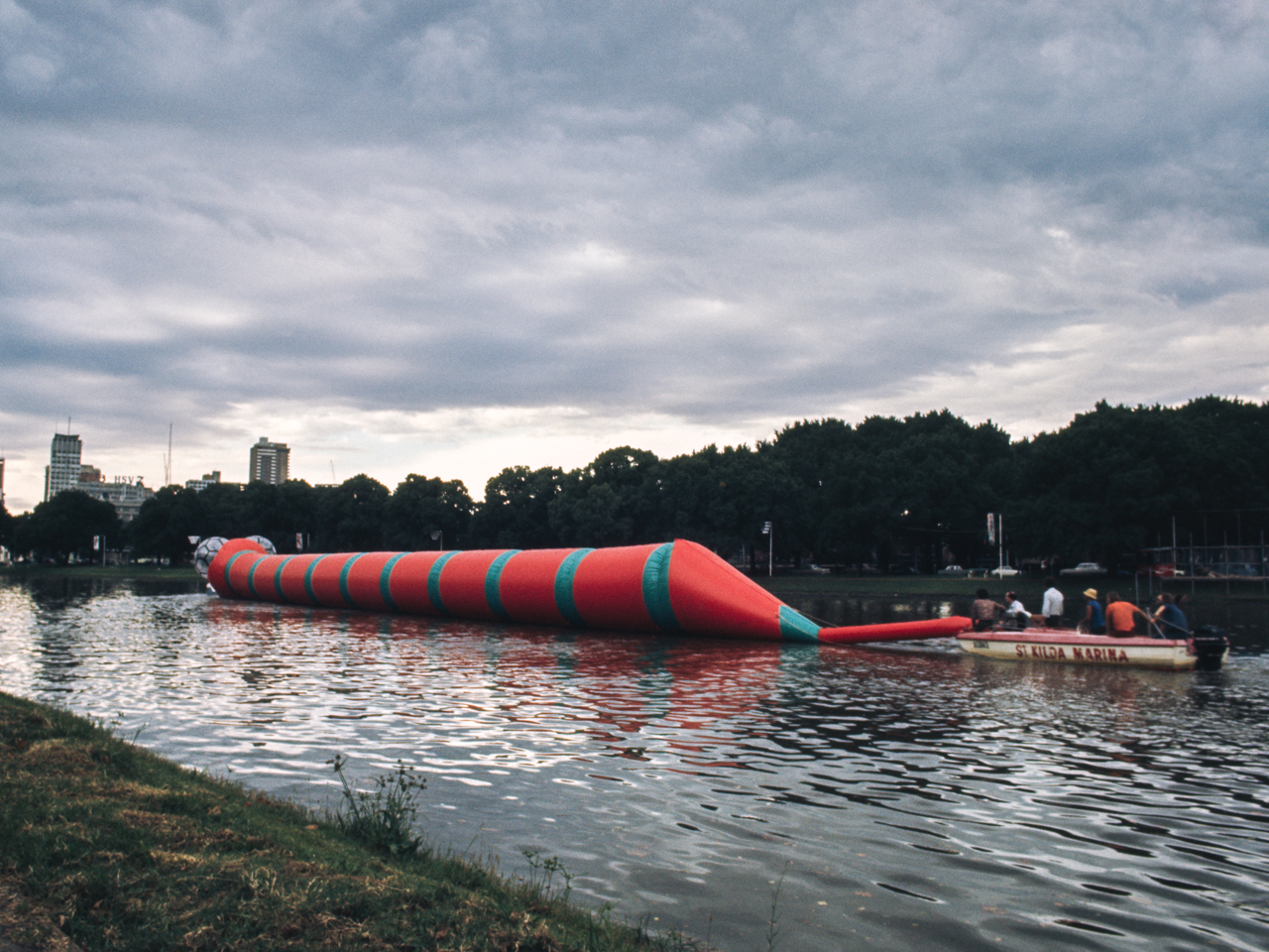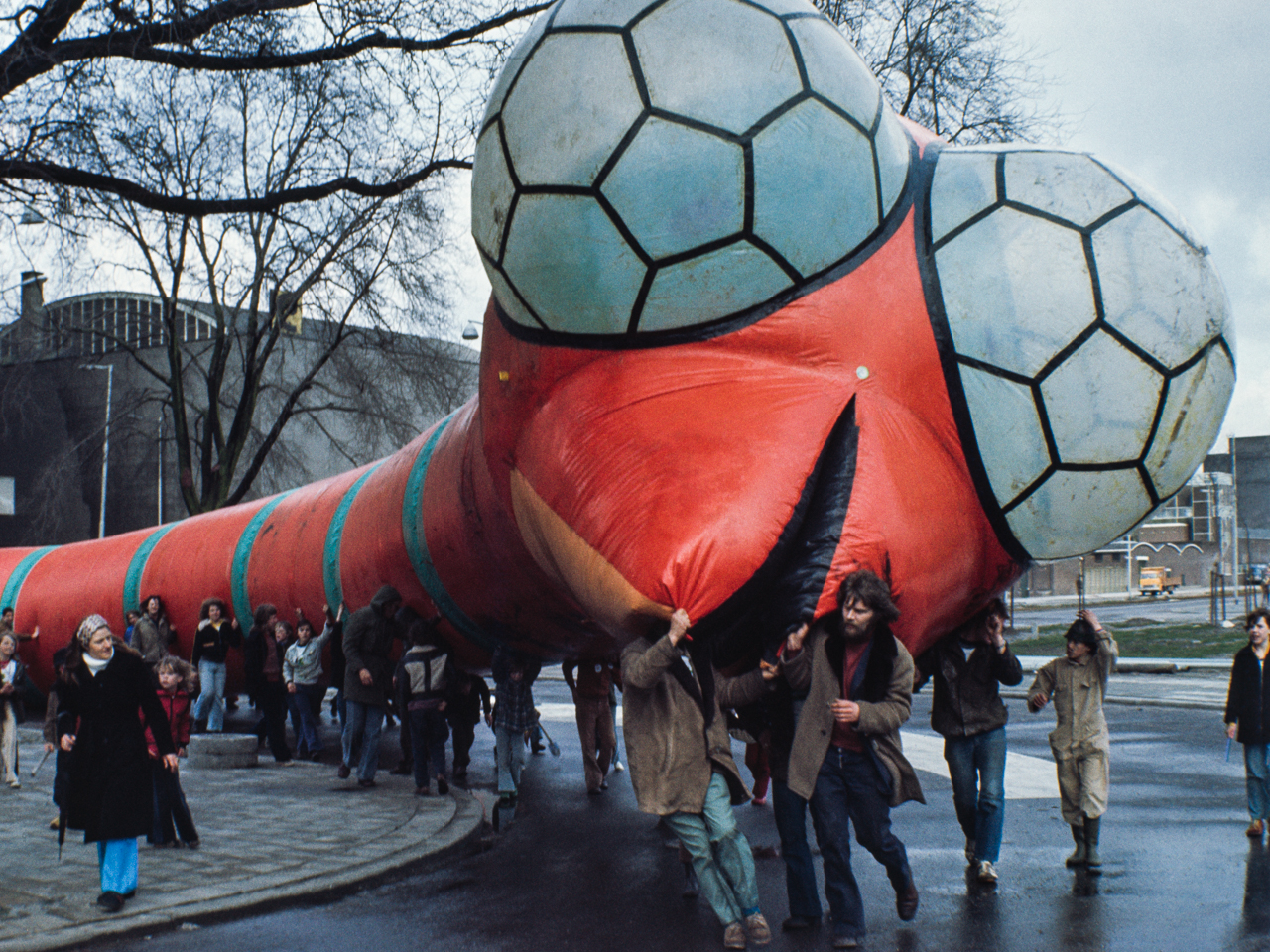 Made for the Moomba Festival in Melbourne, the Centipede was a large air-inflated parade creature whose ‘hundred feet’ were provided by people from the general public who spontaneously joined to carry it through the streets.