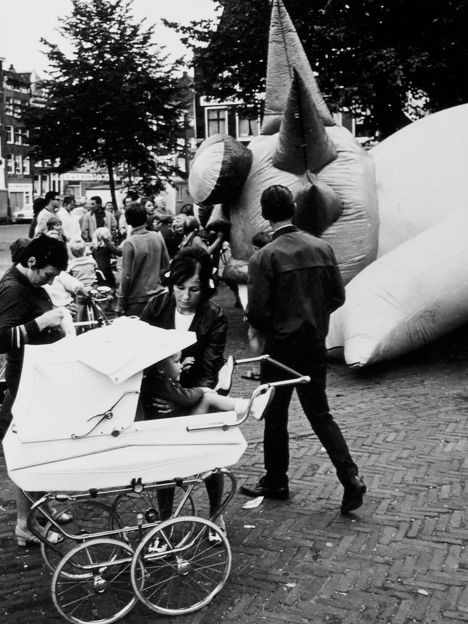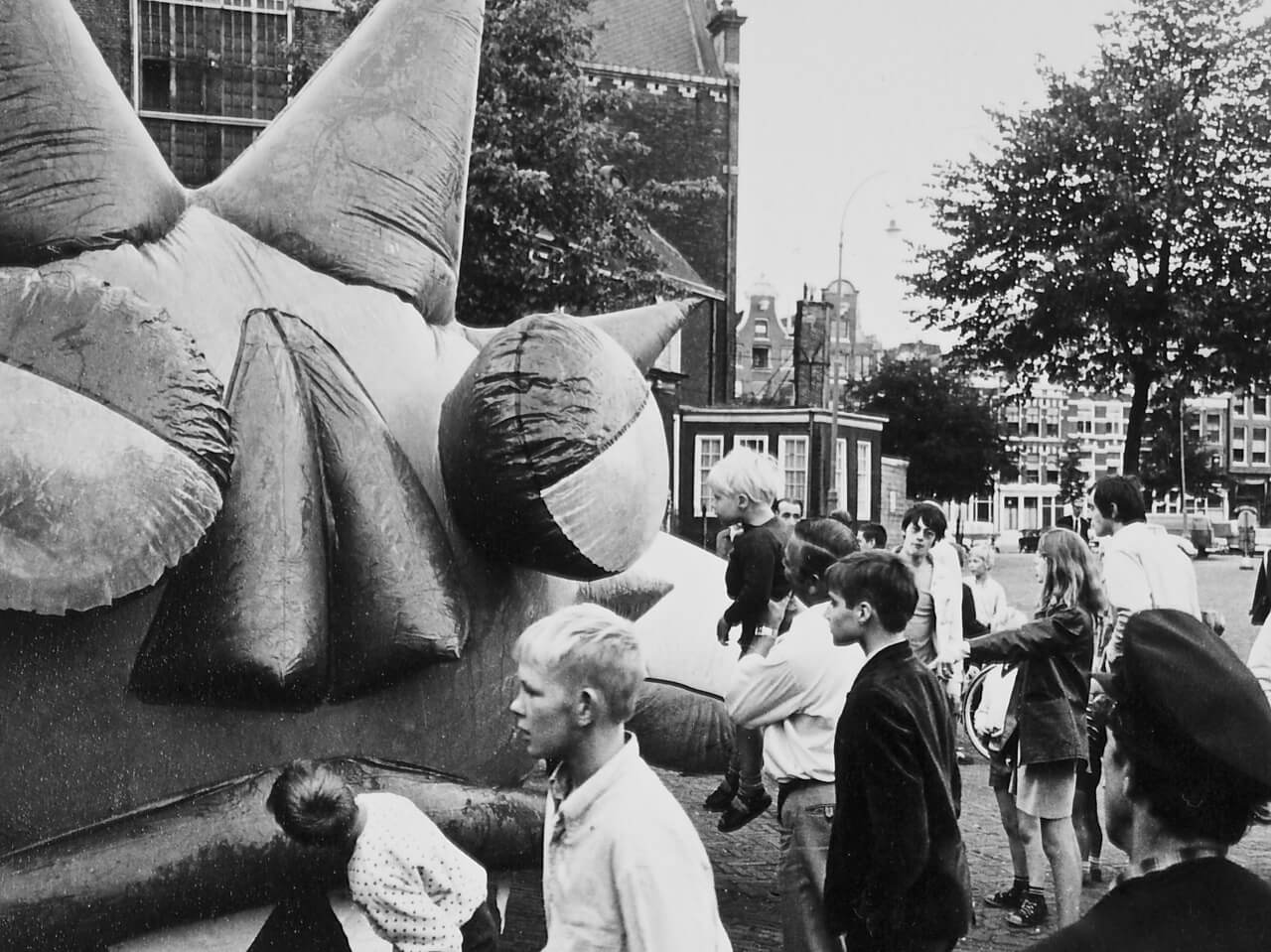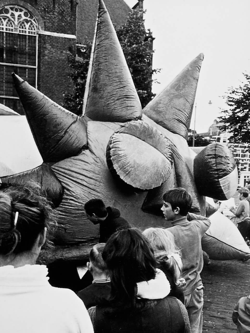 This inflatable dragon was commissioned by William Klein for his 1969 satirical film comedy Mr. Freedom. The dragon was located in a disused metro station in Paris and meant to embody a Maoist ‘Red China Man’. Engaging in agitated conversation with the film’s crass superhero, Mr. Freedom, the dragon’s body shook about and smoke blew out of its nostrils. When the film premiered at the Avignon Festival in France, Marxist-Leninist groups criticized this political caricature.