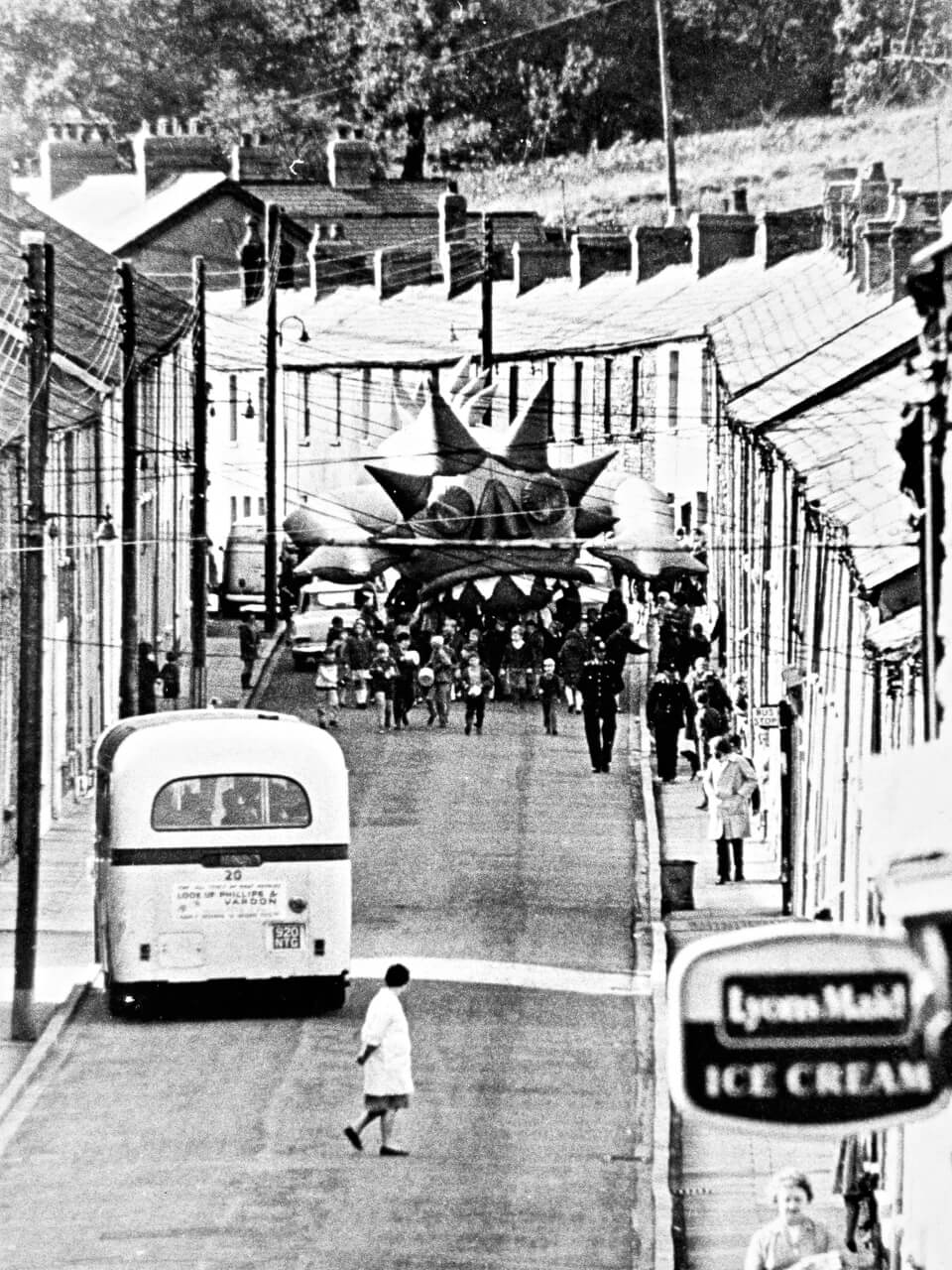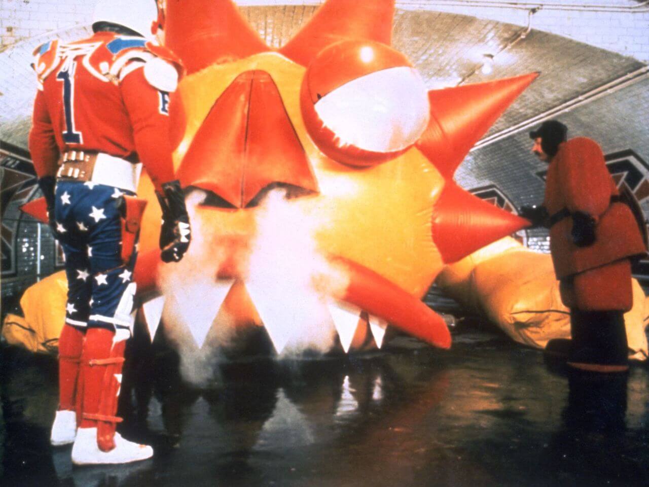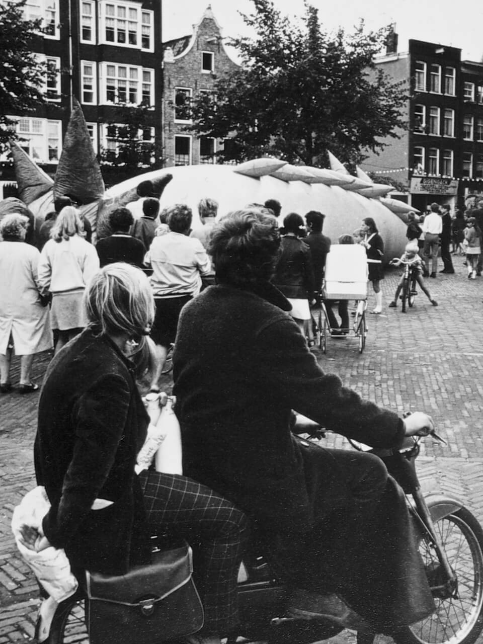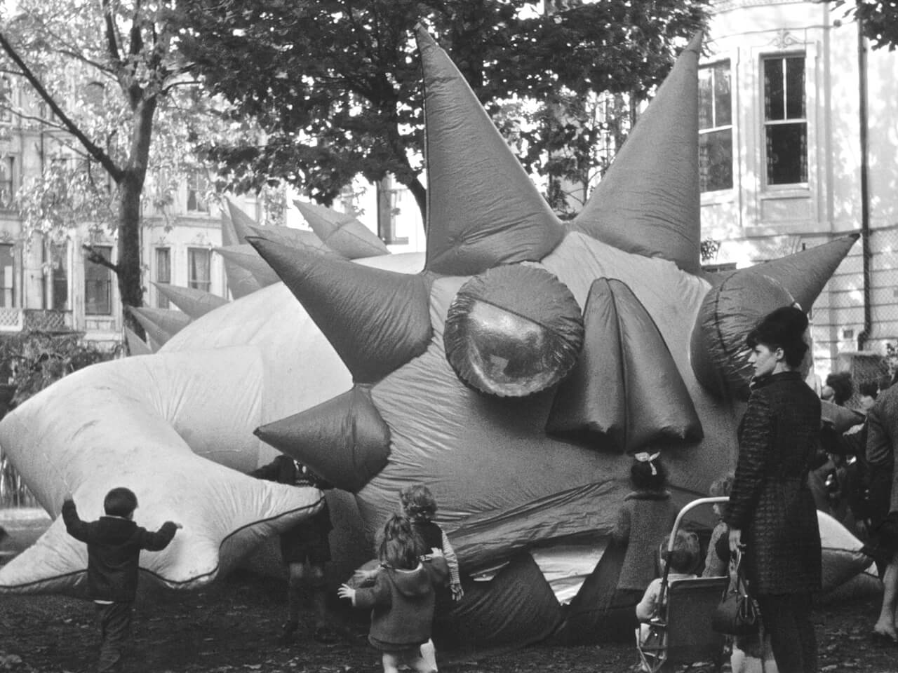 This inflatable dragon was commissioned by William Klein for his 1969 satirical film comedy Mr. Freedom. The dragon was located in a disused metro station in Paris and meant to embody a Maoist ‘Red China Man’. Engaging in agitated conversation with the film’s crass superhero, Mr. Freedom, the dragon’s body shook about and smoke blew out of its nostrils. When the film premiered at the Avignon Festival in France, Marxist-Leninist groups criticized this political caricature.