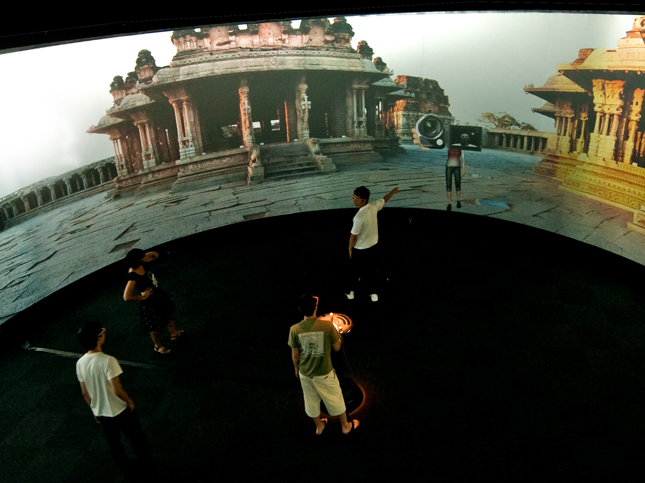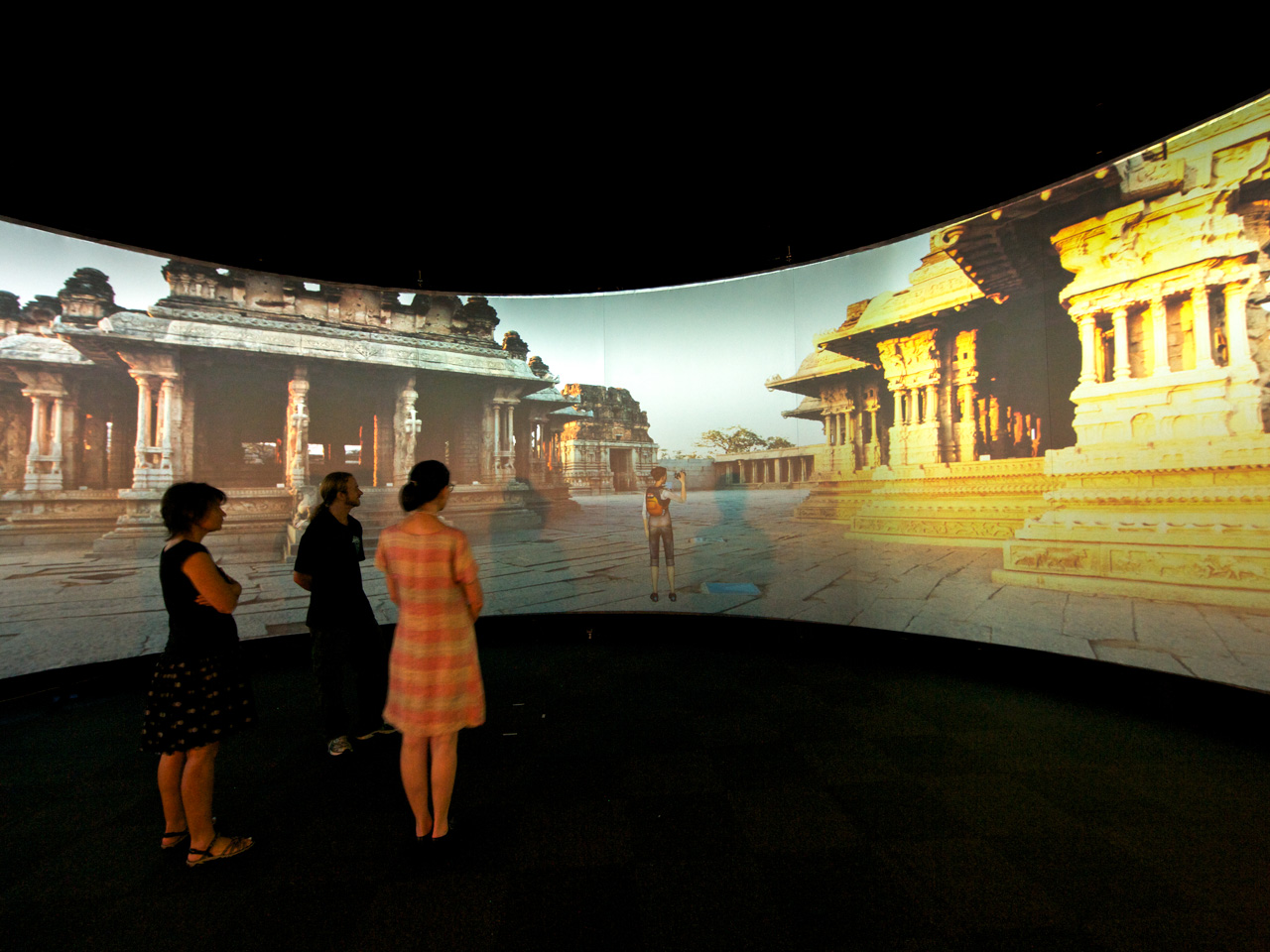 Hampi-Live was the second stage of the Australian Research Council Linkage Project grant, ‘Reformulating narrative in virtual heritage using a co-evolutionary model of immersive interactivity’. The work exploits the technological and expressive features of UNSW iCinema Centre’s Advanced Visualisation and Interaction Environment (AVIE) including camera tracking, omni-stereoscopic projection and 36 channel spatialised sound.