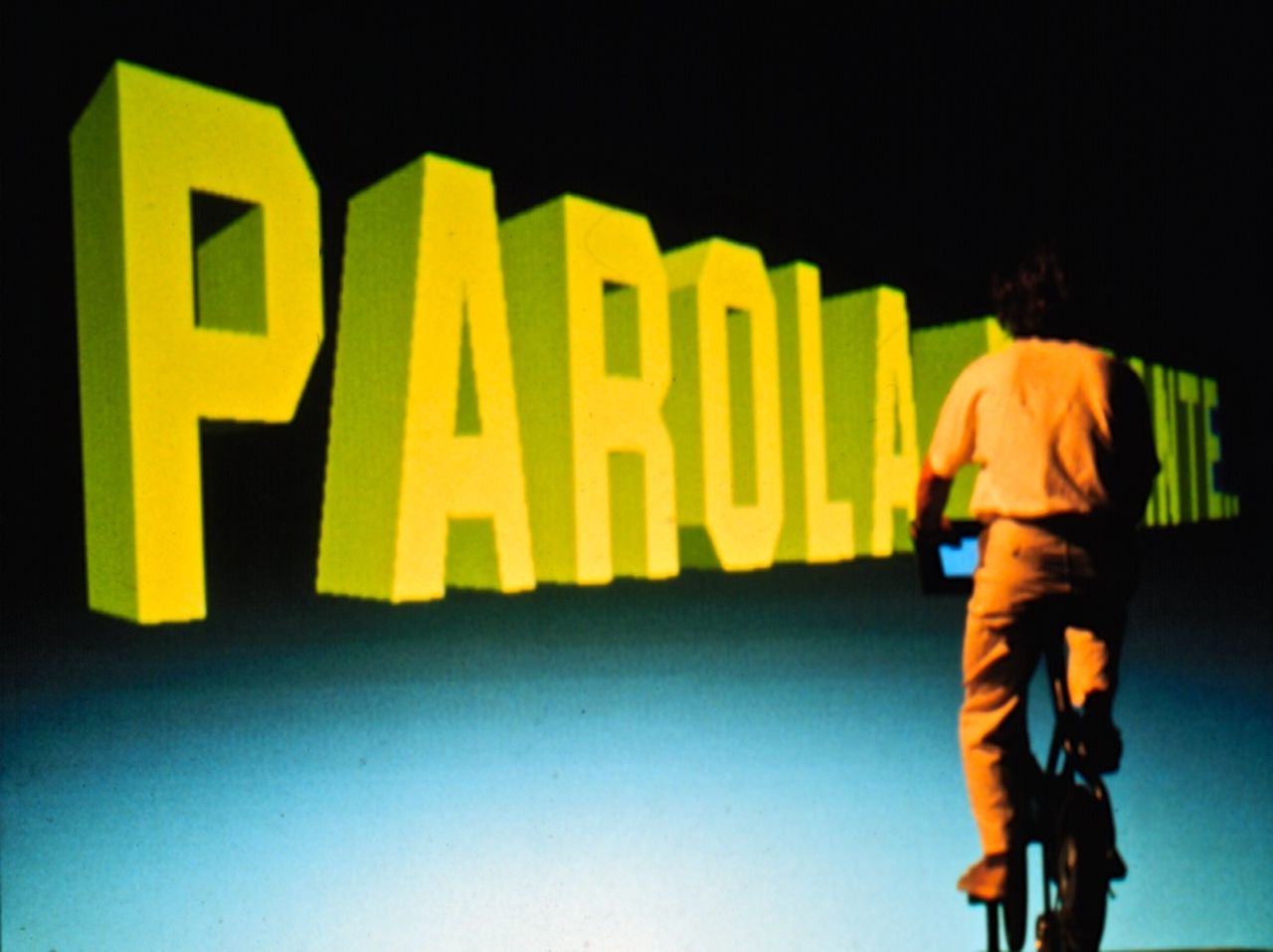 The Legible City is a pioneering interactive art installation where the visitor rides a stationary bicycle through a simulated representation of a city that is constituted by computer-generated, three-dimensional letters that form words and sentences along the sides of the streets. Using the ground plans of actual cities—Manhattan, Amsterdam and Karlsruhe—The Legible City completely replaces the existing architecture of these cities with text formations written and compiled by Dirk Groeneveld. Travelling through these cities of words is consequently a journey of reading; choosing the path one takes creates a recombination of these texts, and spontaneous conjunctions of meaning.