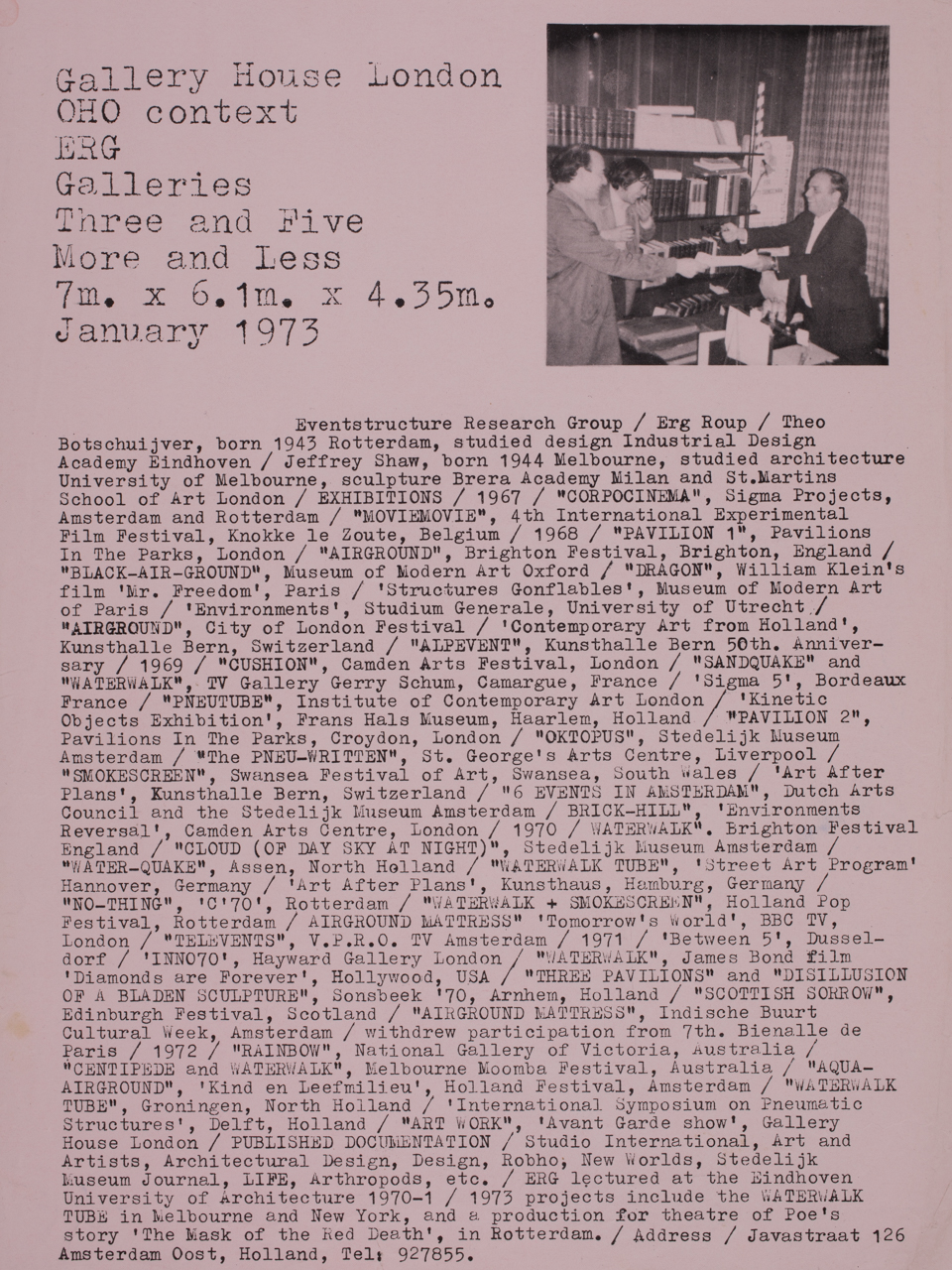 In the other room the white inflatable structure was slightly larger than the space, and as a result was itself pressed against all the surfaces and contours of the room. This was achieved technically by creating a vacuum between the balloon skin and the room, thereby allowing visitors to enter via the doorway into the balloon volume that filled and inversely wrapped the room.