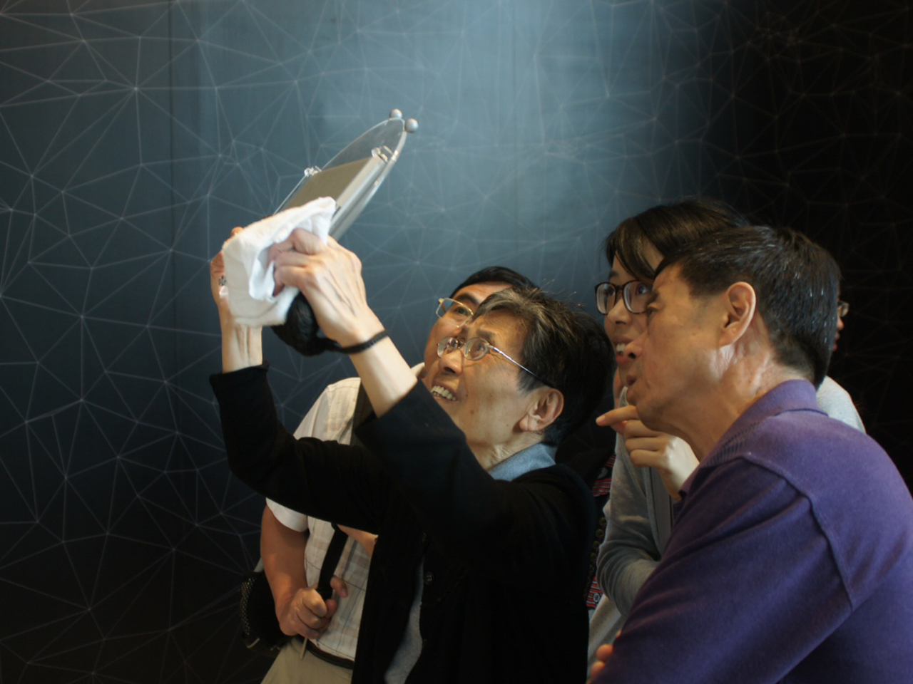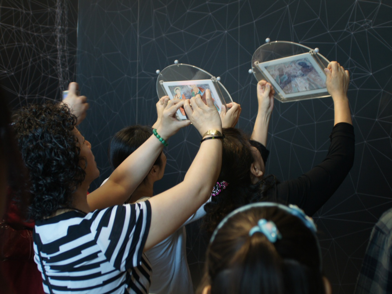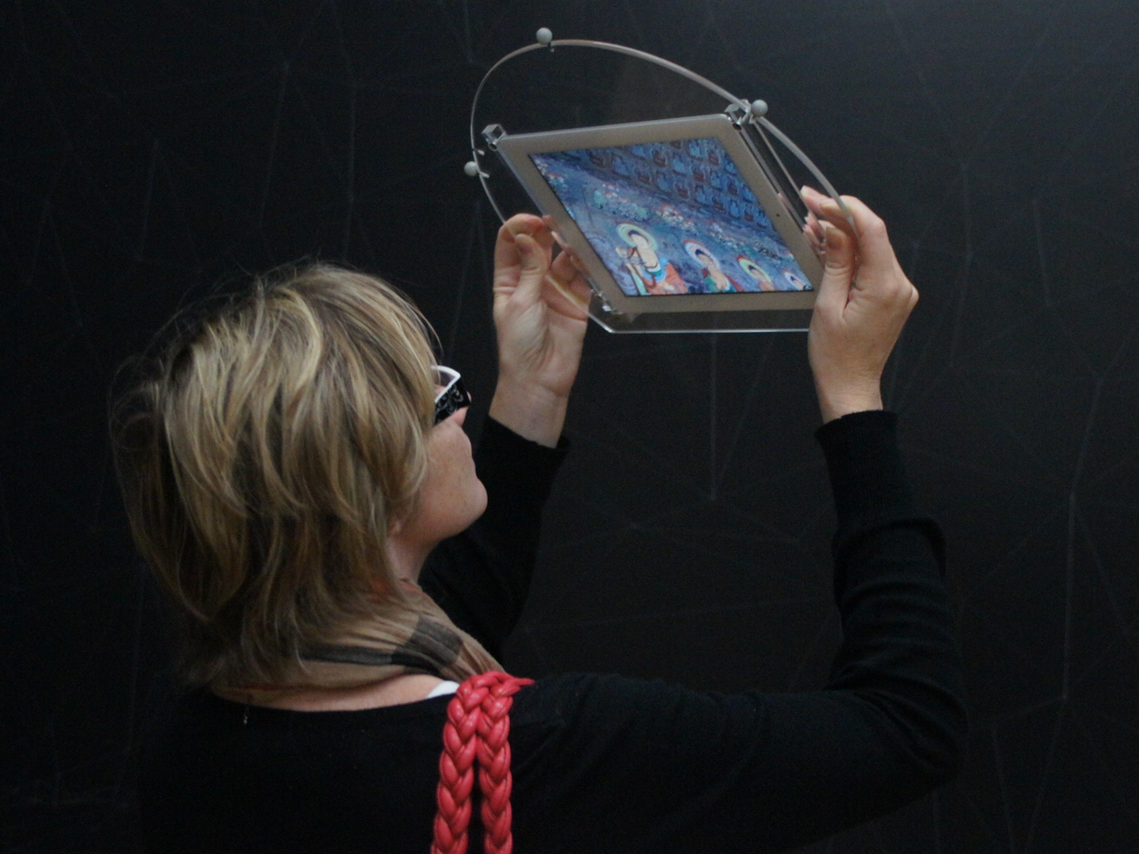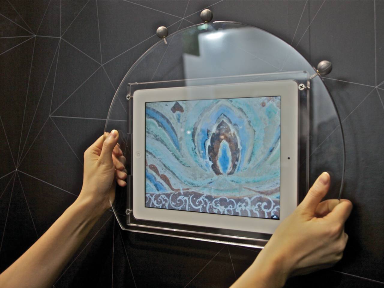 Pure Land AR demonstrates the future of mobile media and augmented reality as a means of virtually embodying 1:1 scale cultural heritage experiences. It creates a space for the conjunction between real and virtual formations that gives transacted aesthetic expression to Dunhuang’s Buddhist art treasury of mural paintings and sculptures. Visitors to Pure Land AR immediately grasp the functionality of the iPads, drawing them to walk around the room and explore the imagery of Cave 220. Furthermore, the experience generates spontaneous discussion among these visitors, as well as ‘virtual tourism’ as people enthusiastically photograph the imagery on the iPad with their own cameras.