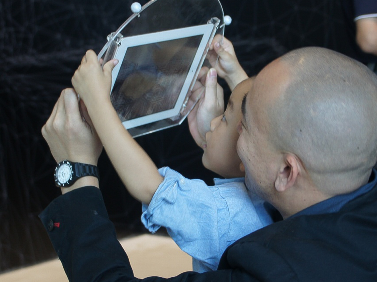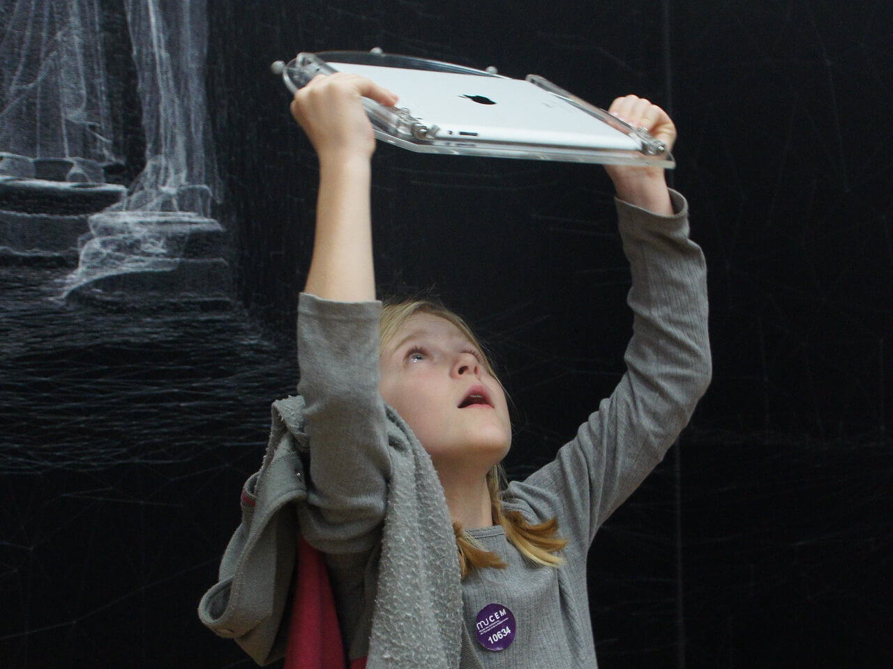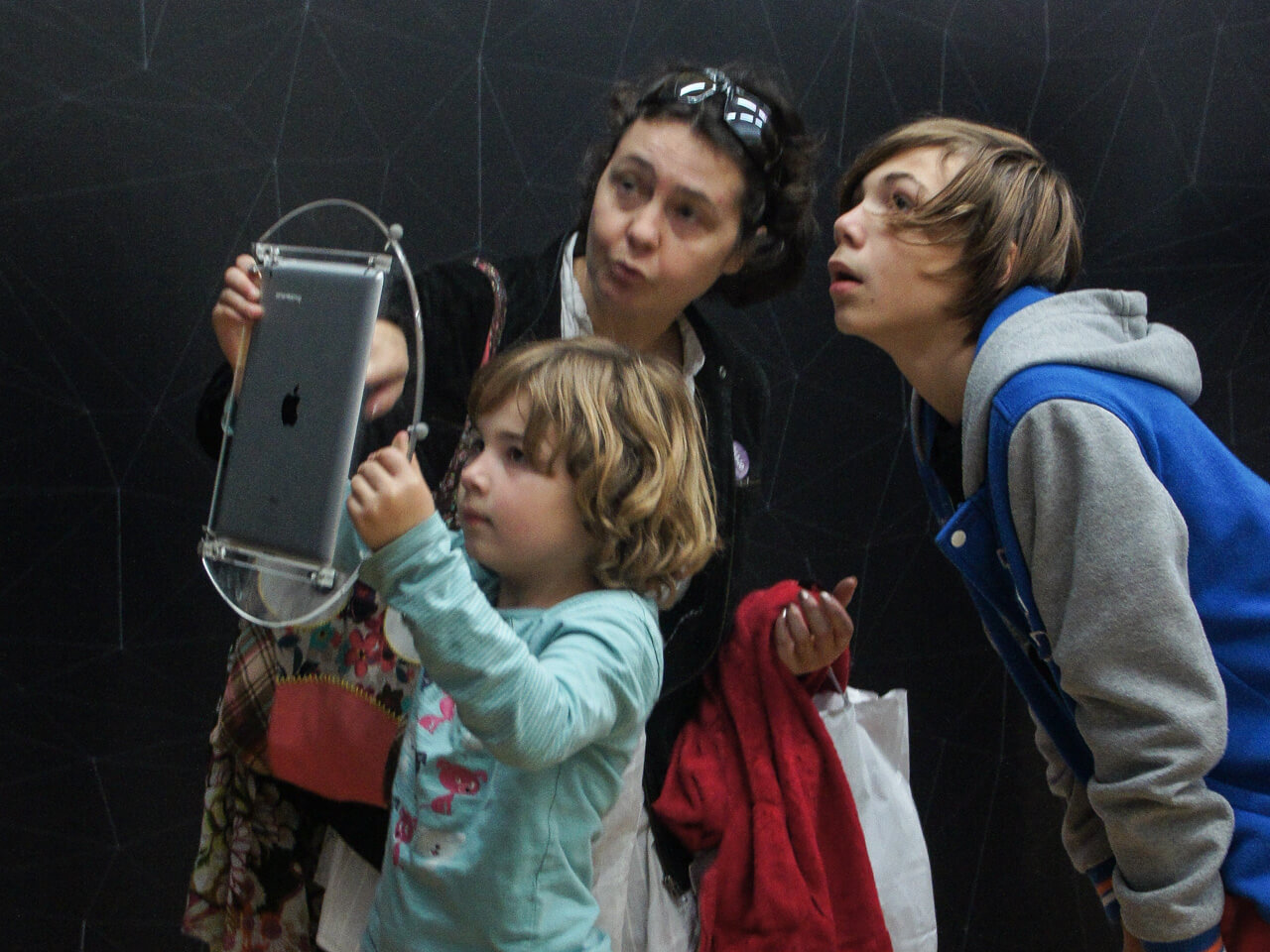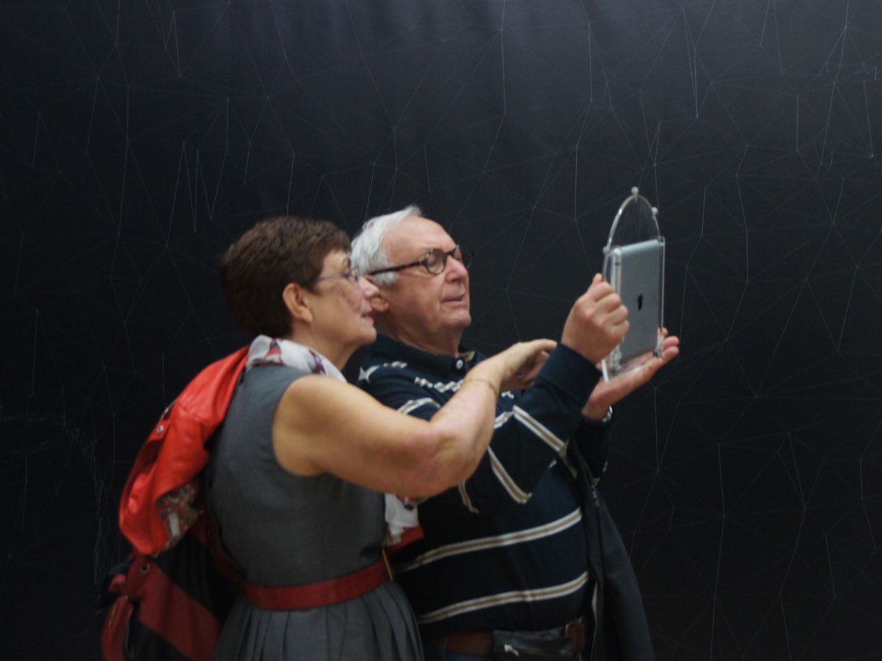 Pure Land AR demonstrates the future of mobile media and augmented reality as a means of virtually embodying 1:1 scale cultural heritage experiences. It creates a space for the conjunction between real and virtual formations that gives transacted aesthetic expression to Dunhuang’s Buddhist art treasury of mural paintings and sculptures. Visitors to Pure Land AR immediately grasp the functionality of the iPads, drawing them to walk around the room and explore the imagery of Cave 220. Furthermore, the experience generates spontaneous discussion among these visitors, as well as ‘virtual tourism’ as people enthusiastically photograph the imagery on the iPad with their own cameras.