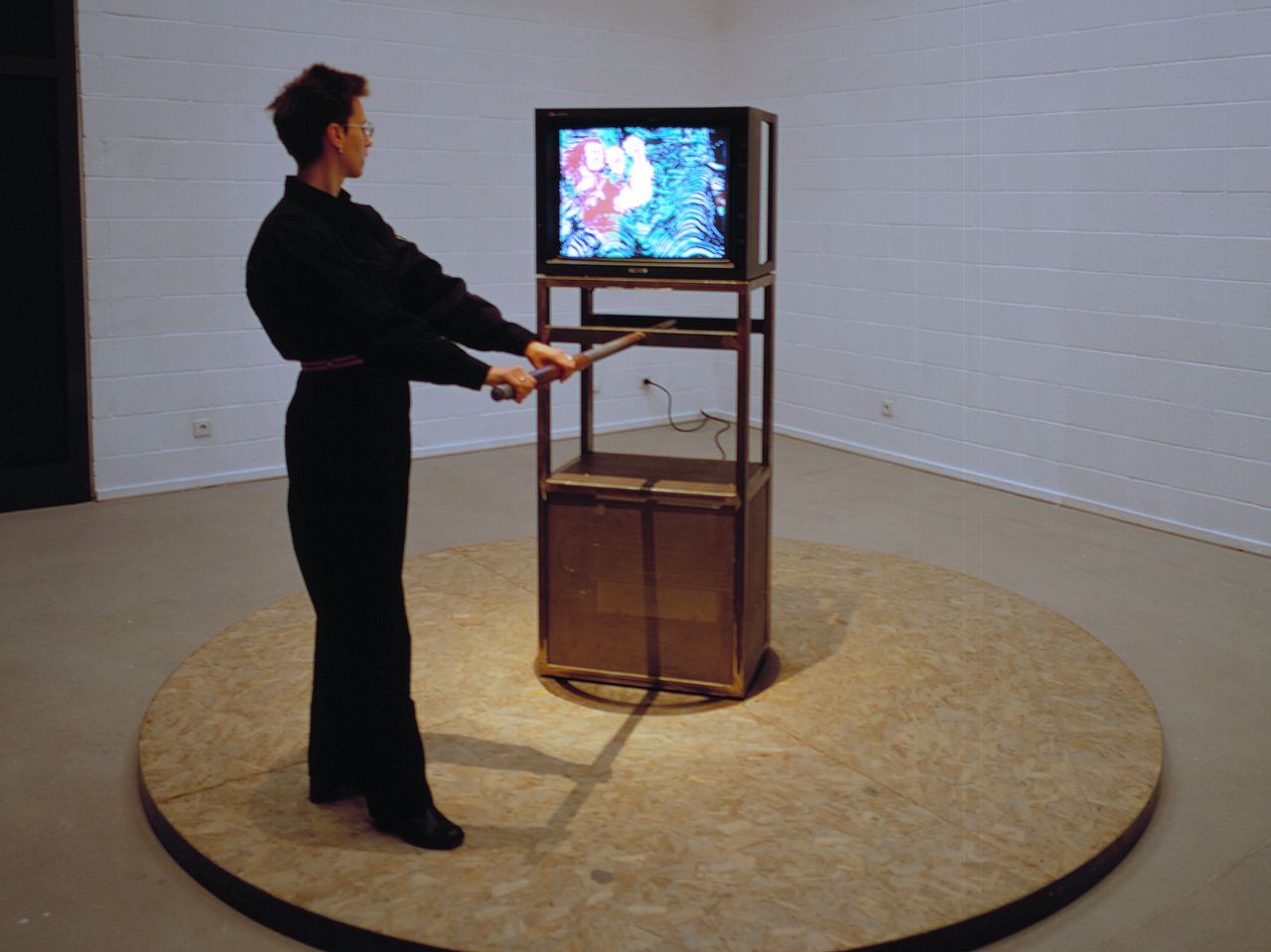 This work derives from a much larger multimedia project titled Imaginary Museum of Revolutions (1988) that was proposed by Tjebbe van Tijen and Jeffrey Shaw for the Bicentennial of the French Revolution at La Villette in Paris. The coup in Romania in 1989 brought the world into the era of mediated revolutions, and the modernist wheel of changes became a televised simulacrum. This created a new situation where the real is relocated onto a virtual proscenium of passions, hopes and struggle.