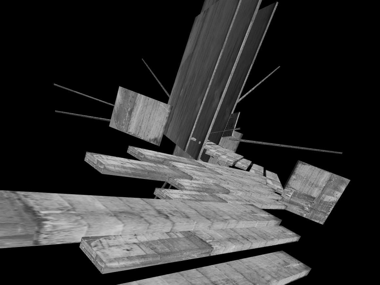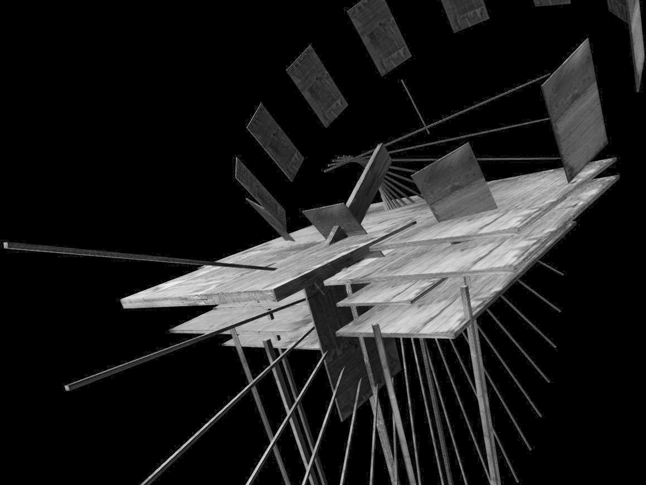 Initially this work was developed as a stereoscopic projection for a concert of the Huelgas Ensemble conducted by Paul van Nevel and performed at Zeitfenster Biennale Alter Musik 2002 in the DaimlerChrysler Building, Berlin.