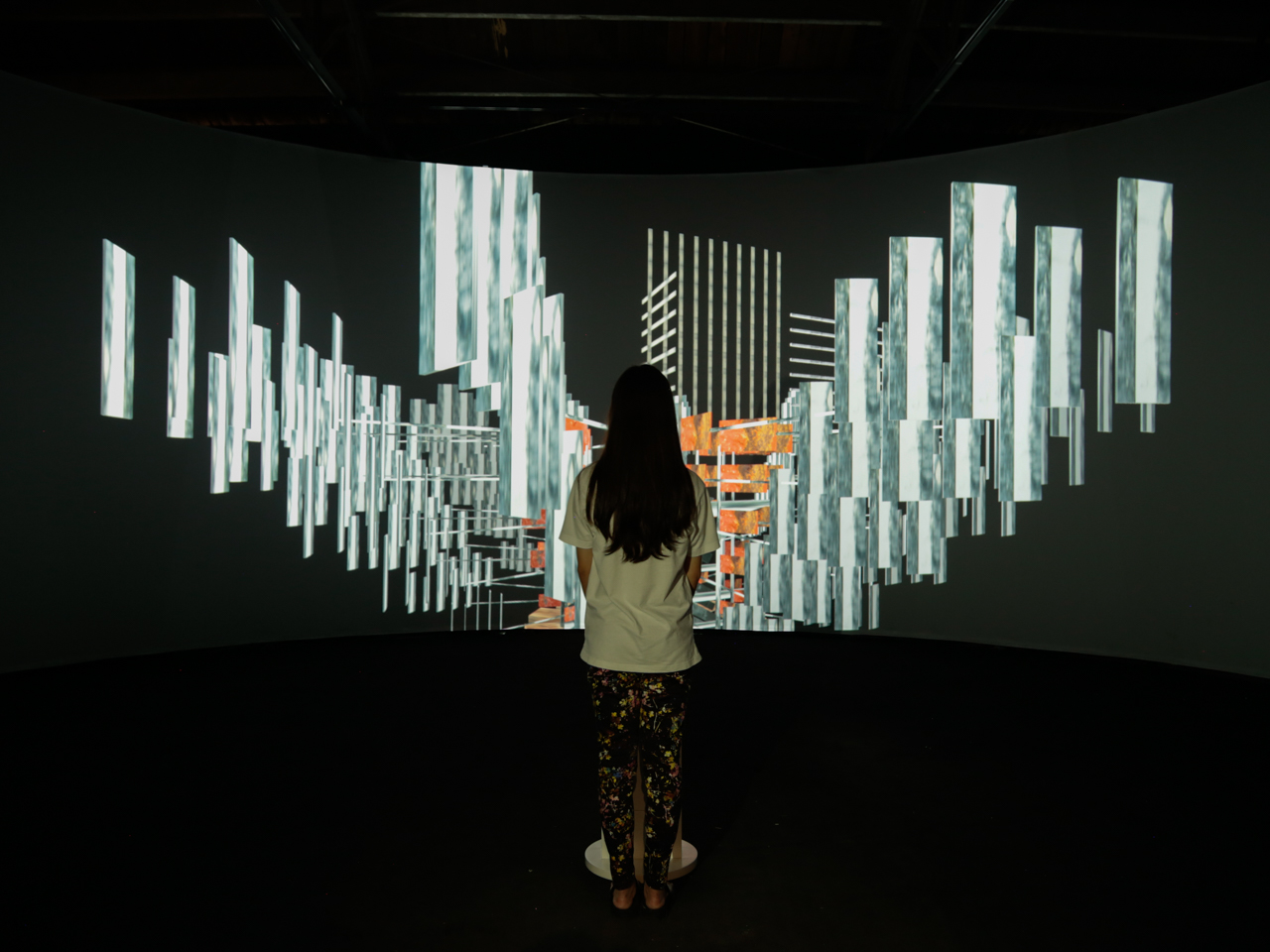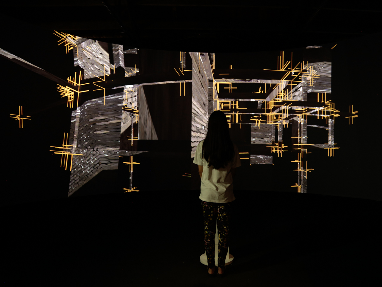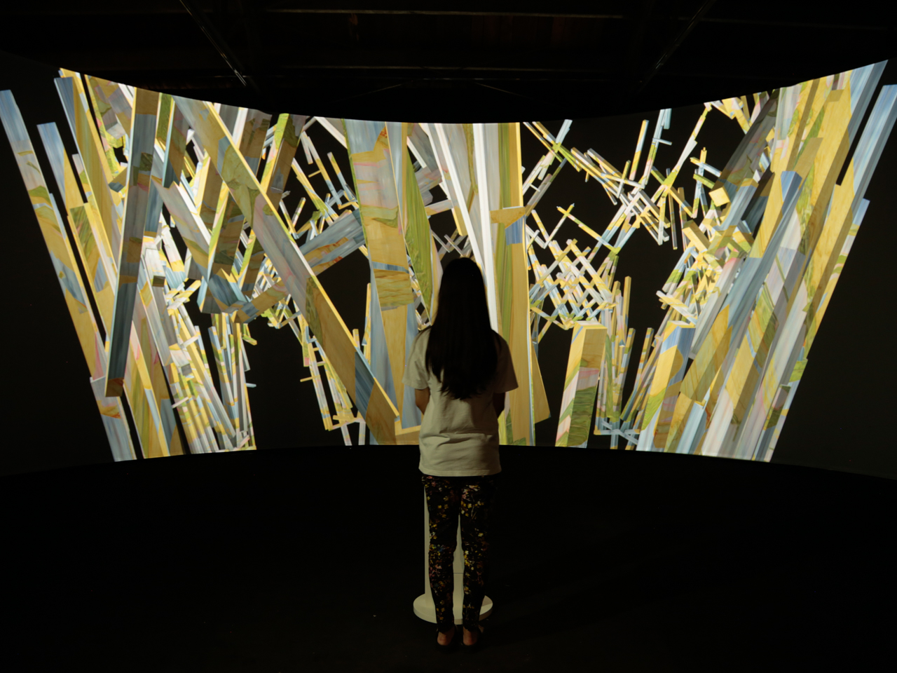 In its later iterations it became an interactive 3-D computer-graphic installation that provides an evolving and elucidating visualization of the polyphonic music of the Renaissance. Custom software randomly selects from a vocabulary of architectonic forms that are added, removed and transfigured to create the artwork’s dynamically developing visual compositions. Comprising a variety of iconographic frameworks for spectators to select from, these metaphoric and synesthetic structures reach out to engage the viewer as they unfold in a seemingly organic manner.
