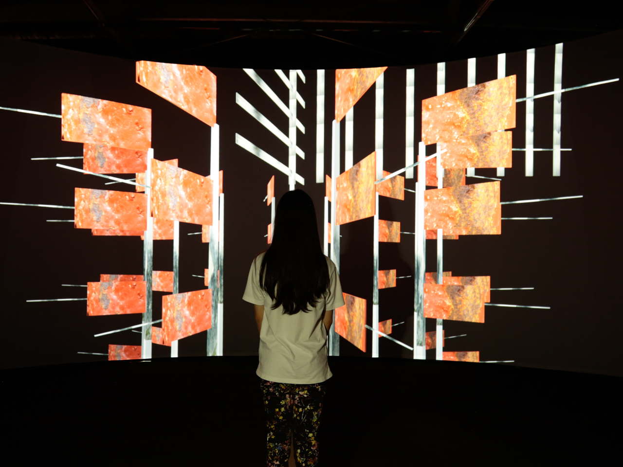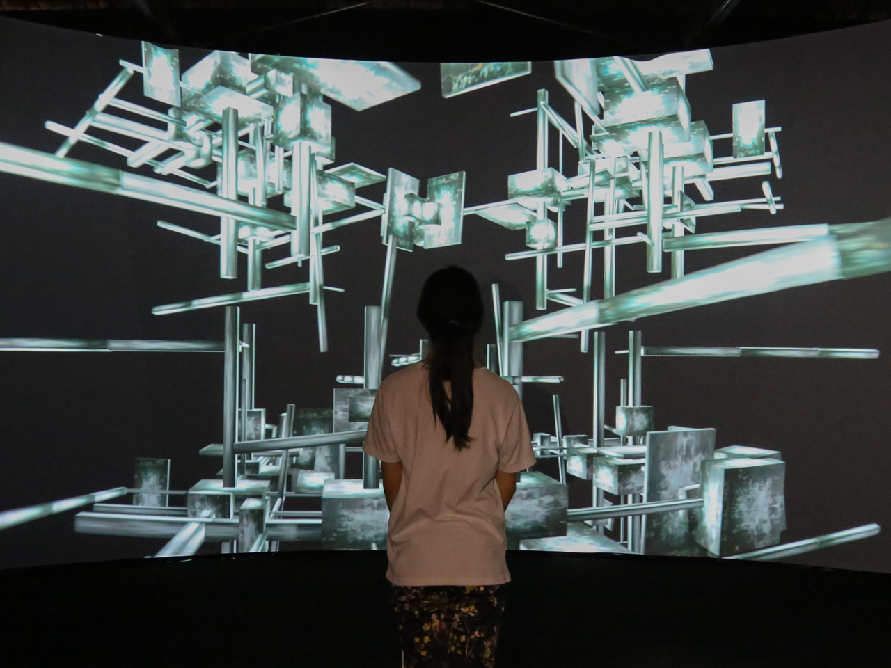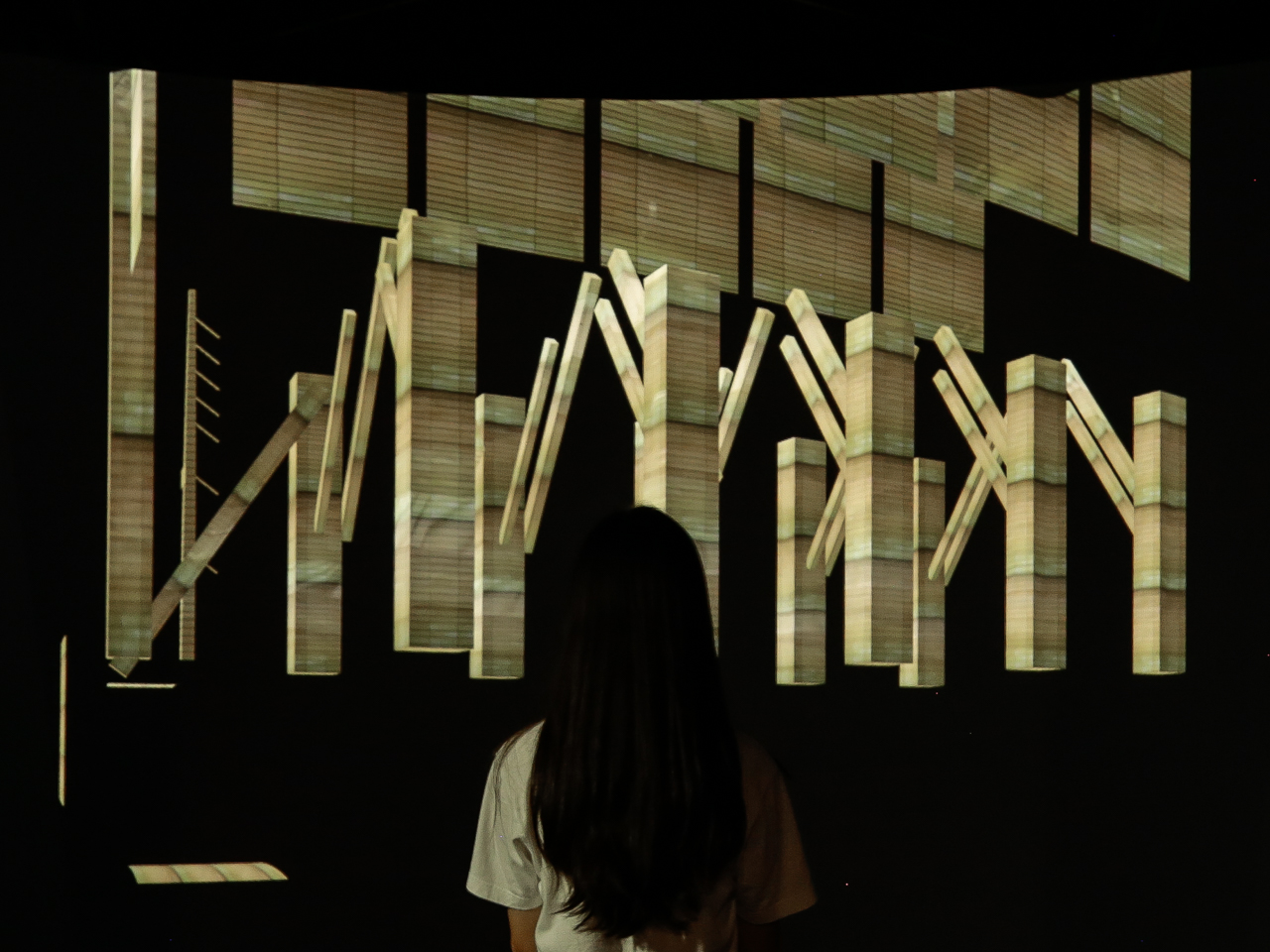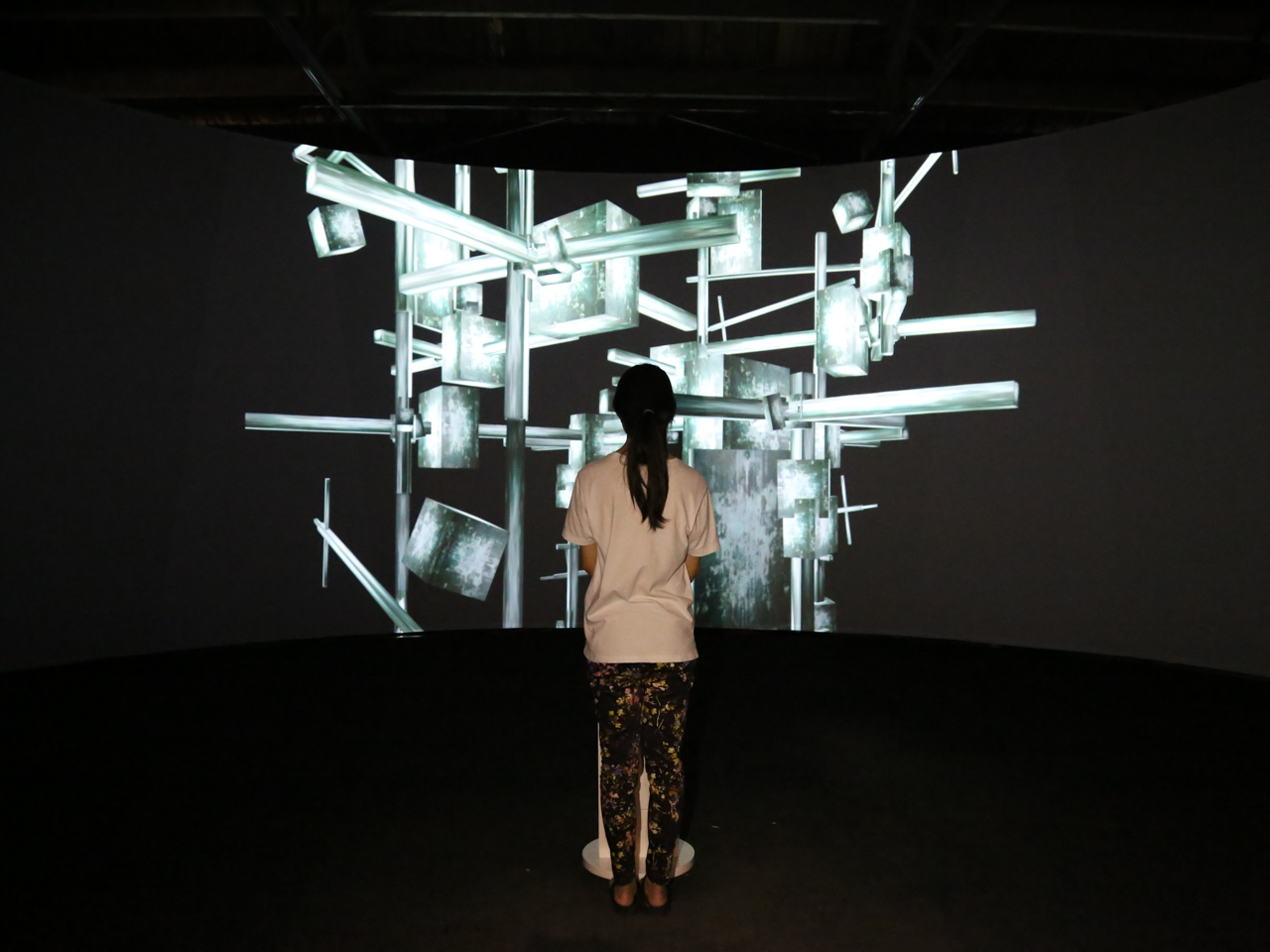 In its later iterations it became an interactive 3-D computer-graphic installation that provides an evolving and elucidating visualization of the polyphonic music of the Renaissance. Custom software randomly selects from a vocabulary of architectonic forms that are added, removed and transfigured to create the artwork’s dynamically developing visual compositions. Comprising a variety of iconographic frameworks for spectators to select from, these metaphoric and synesthetic structures reach out to engage the viewer as they unfold in a seemingly organic manner.