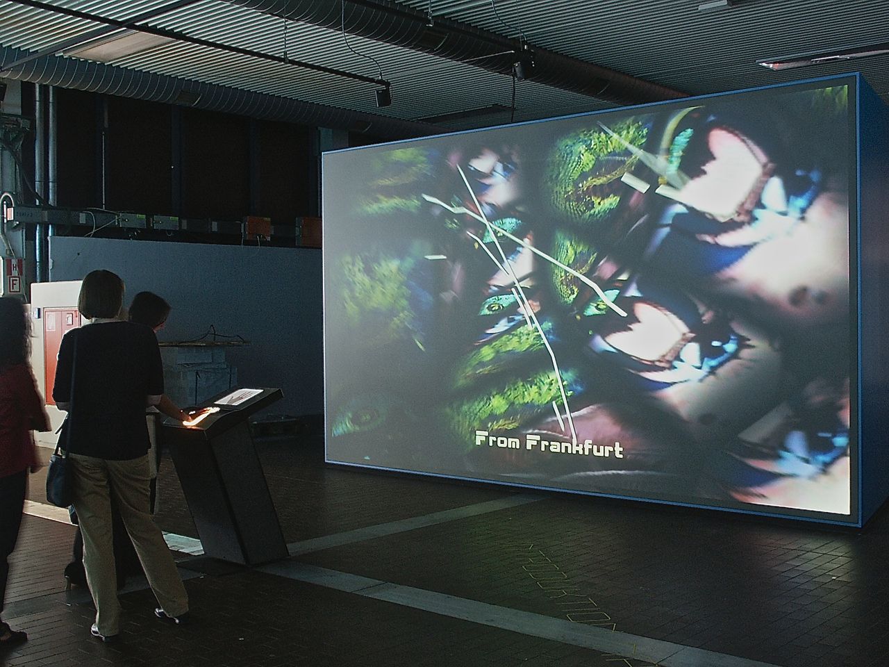 The Web of Life is an interactive artwork configured by a distributed network of installations – one was permanently situated at the ZKM in Karlsruhe, and the four others travelled to various locations worldwide over a period of two years. This network of installations allows people to jointly influence a shared audiovisual experience.