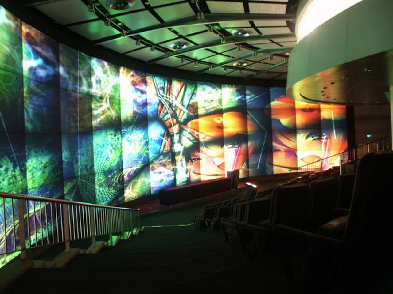 The Web of Life is an immersive conjunction of computer graphics, video images, a 70.1 channel surround sound experience, and specially designed architectures. Its algorithmic and emergent tapestry of audiovisual and thematic correspondences is activated and modulated by the patterns derived from the palms of visitors’ hands that are scanned and entered into the system from both local and remote input terminals. These varied and uniquely individual palm lines appear on the installation screen with a caption indicating the global location where that person’s hand was scanned. These lines then merge, and activate a singular sequence of transformations on the screen and in the musical score. In this way each visitor connects with and breathes new life into this networked artwork; with a ritual handshake they become protagonists of the Web of Life.