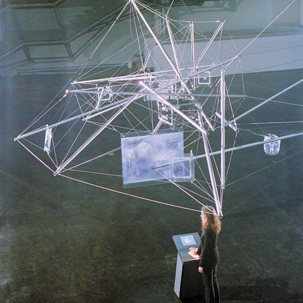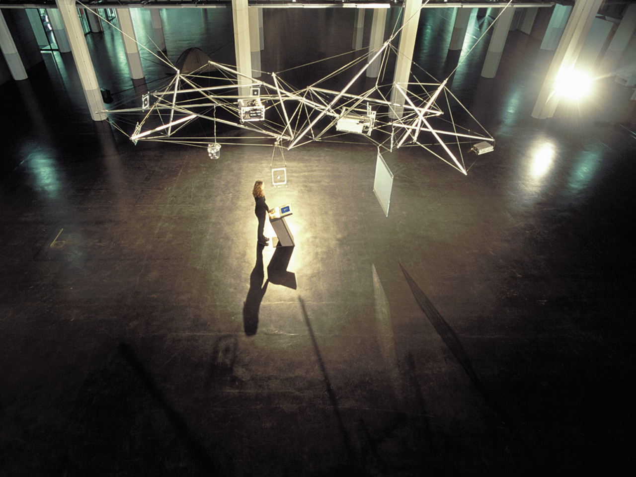 The Web of Life project also encompassed the publication of a book by Michael Gleich, and a dedicated website (www.weboflife.de). Besides the permanent installation at the ZKM Karlsruhe, the four specially designed remote Web of Life terminals travelled around the world over a two-year period, and were installed and connected with one another at various exhibitions and cultural festivals in New York, Tokyo, Berlin, Melbourne, Sao Paolo and other places. Manfred Wolff-Plotteggg designed a unique tensegrity structure embodying another network, of cables and tubes, for these touring installations.